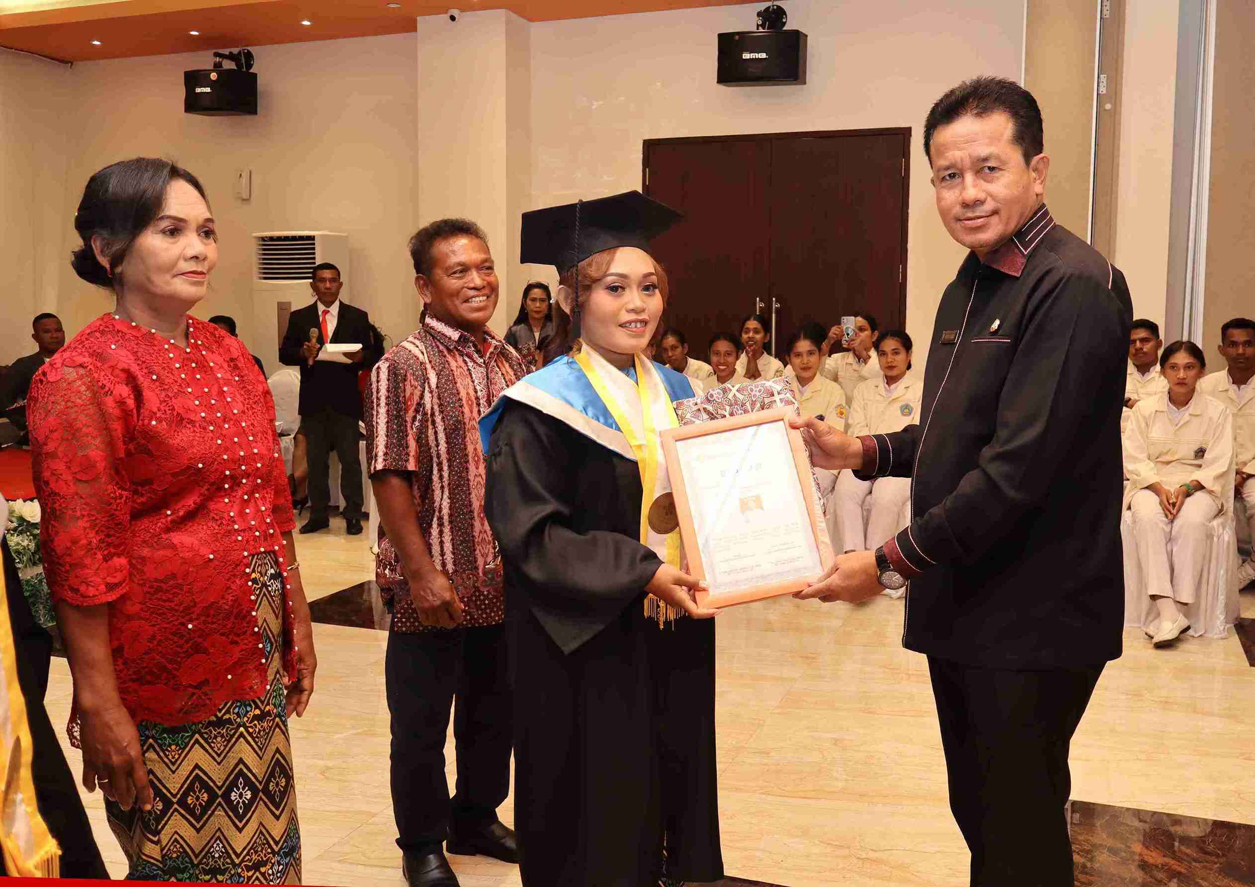 Penyampaian Penghargaan oleh Pj Sekda kepada Wisudawati terbaik