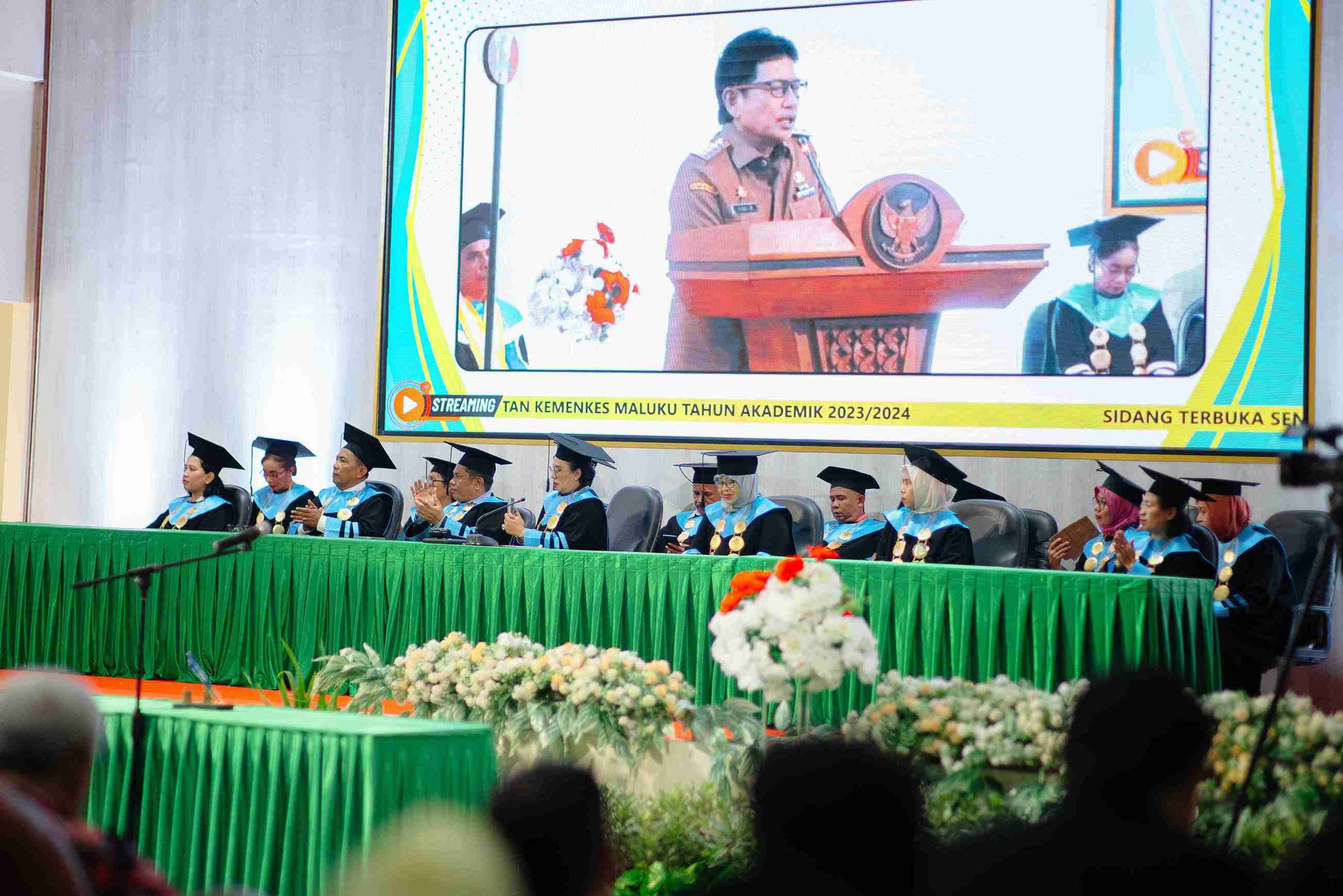 Potret Sambutan oleh Pj. Gubernur Maluku, Ir. Sadali Ie dari Senat Poltekkes Kemenkes Maluku